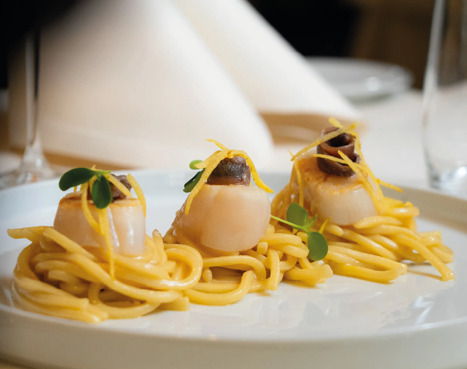 • Spaghettone al limone | Burro | Acciughe del Cantabrico | Capesante
